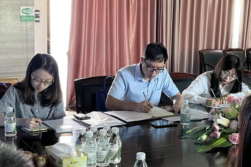 参观完生产车间,调研组来到会议室与公司陪同领导进行了深入交流与沟通。首先李总向调研组介绍了公海彩船6600集团的发展现况,接着了解了企业主导产品、规模产值、经济效益和发展规划等情况,询问存在的困难问题和需求建议以及存在的困难和问题,同时调研组还宣讲了国家相关政策和发展导向。